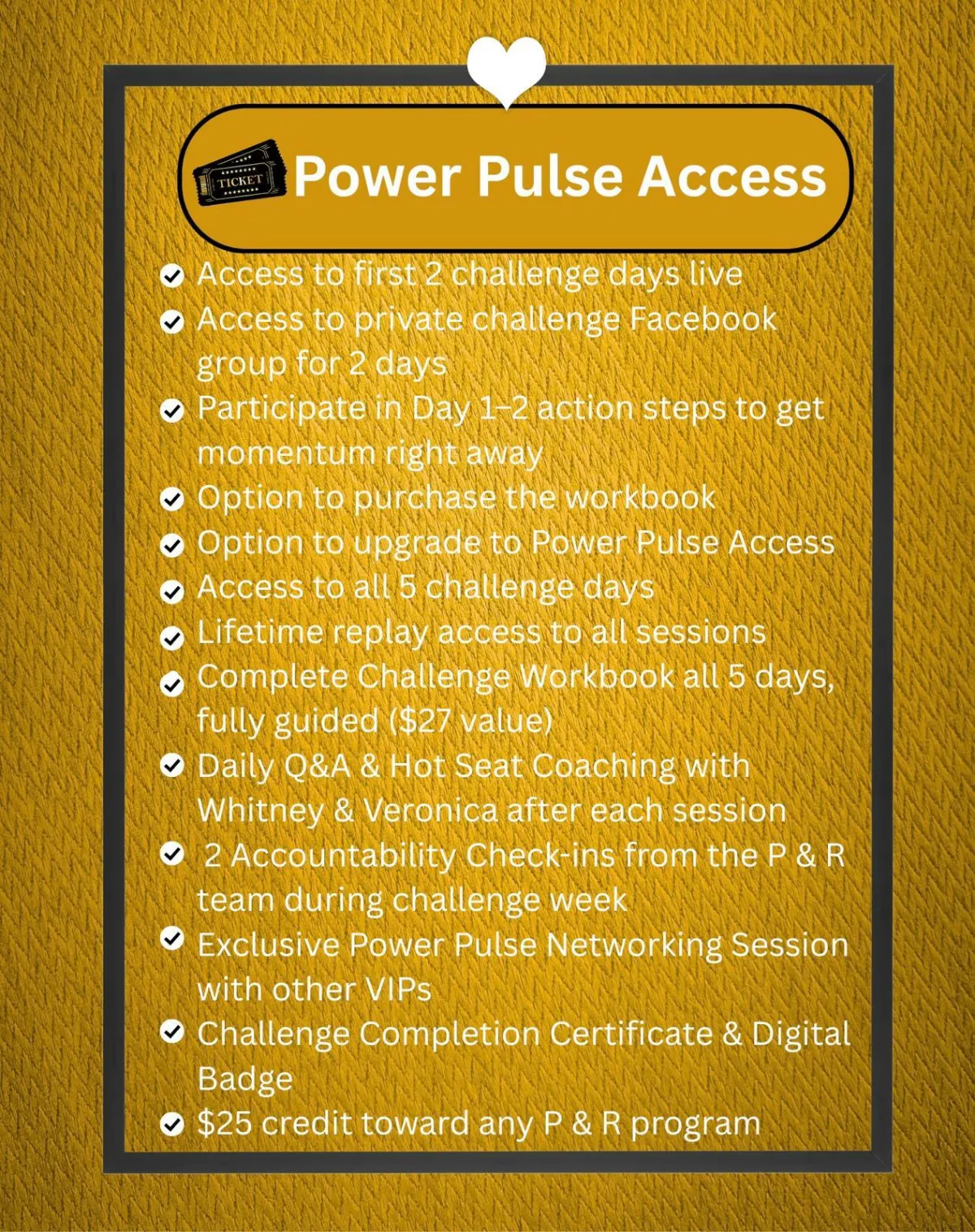 Whitney Pearsall and Veronica Russell are the powerhouse duo behind P & R Consulting Group. Both women know firsthand what it means to juggle life, business, and the unexpected and they’ve built their mission around helping entrepreneurs move from overwhelm to organized growth. With backgrounds in marketing strategy, accountability systems, and community building, Whitney and Veronica bring a unique balance of heart and structure to every program they lead.